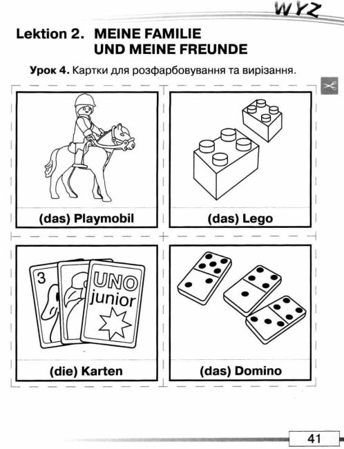 Робочий зошит є частиною навчально-методичного комплекту до підручника Німецька мова 1 клас автор Людмила Горбач для закладів загальної середньої освіти. Він укладений за новою навчальною програмою, відповідає Держстандарту й концепції Нової української школи. У посібнику подано різноманітні завдання для вивчення й закріплення граматич-ного матеріалу, творчі вправи, прописи, картки для вирізання.