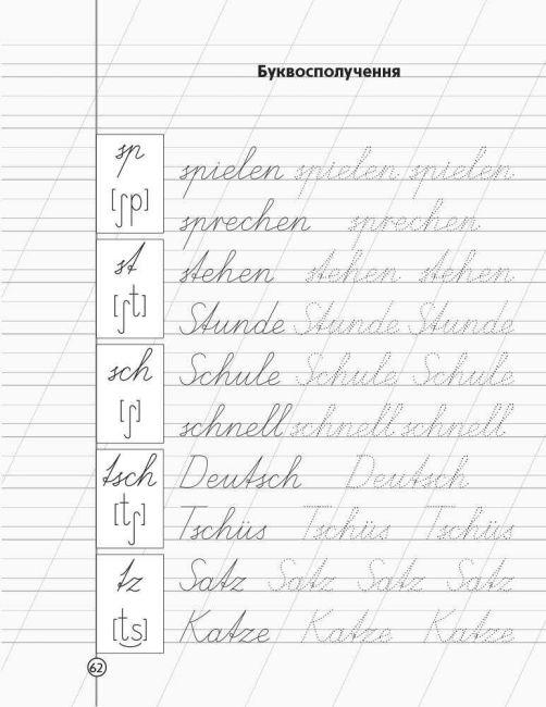 Зошит-шаблон з німецької мови призначений для першого та другого років навчання у закладах загальної середньої освіти. Зошит відповідає типовим освітнім програмам Нової української школи, затвердженим МОН України.
