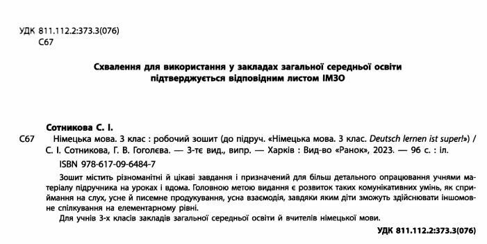 Робочий зошит Німецька мова Deutsch lernen ist super 3 клас НУШ Сотникова Ранок. Зошит містить різноманітні й цікаві завдання і призначений для більш детального опрацювання учнями матеріалу підручника на уроках і вдома.