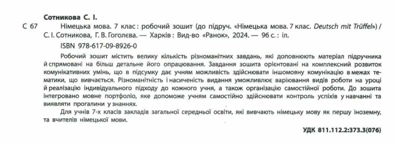 Робочий зошит Німецька мова 7 клас До підручника Deutsch mit Truffel! Авт: С.І. Сотникова Г.В. Гоголєва Вид-во: Ранок 100989