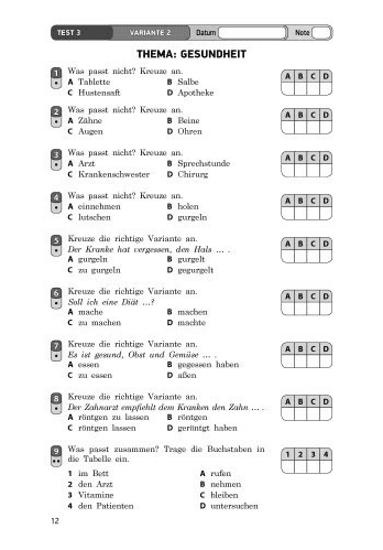 Зошит містить підсумкові та семестрові контрольні, а також поточні перевірочні роботи з німецької мови для учнів 7 класів. До комплекту включено завдання, побудовані на зразок зовнішнього незалежного оцінювання, що допоможе школярам навчатися працювати з тестами. Підготуватися до контрольних робіт можна за допомогою інтерактивних завдань, розміщених на сайті видавництва. Для учнів загальноосвітніх шкіл і вчителів німецької мови.