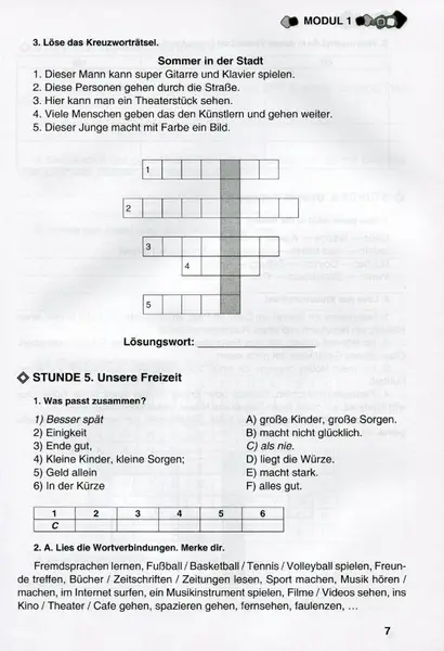 Цей зошит містить різноманітні завдання, які спрямовані на закріплення та повторення вивченого матеріалу з німецької мови, а також на контроль навчальних досягнень учнів. Завдання допомагають учням краще засвоїти граматичні структури, розширити словниковий запас і вдосконалити мовні навички, що дозволяє ефективно підготуватися до наступних етапів навчання.