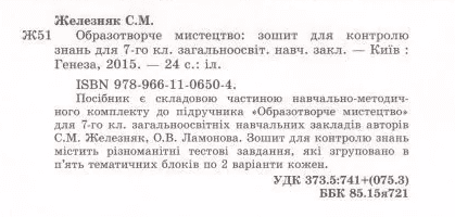 Образотворче мистецтво 7 клас Зошит для контролю знань Железняк С. Генеза