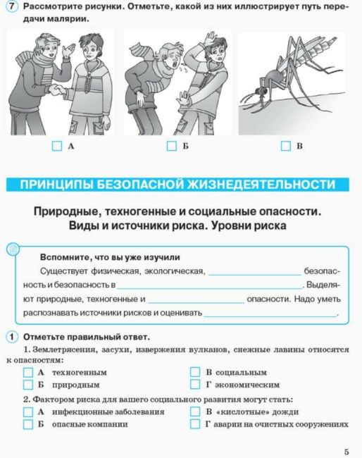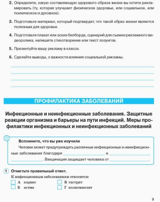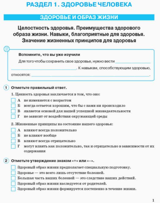 Рабочая тетрадь Основы здоровья 7 класс содержит задания разных уровней сложности и практические задания. Во вкладыше даны задания для тематического контроля знаний.