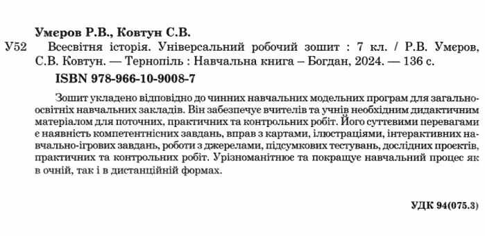 Універсальний робочий зошит Всесвітня історія 7 клас НУШ Авт: Р.В. Умєров С.В. Ковтун Вид-во: Богдан 103824
