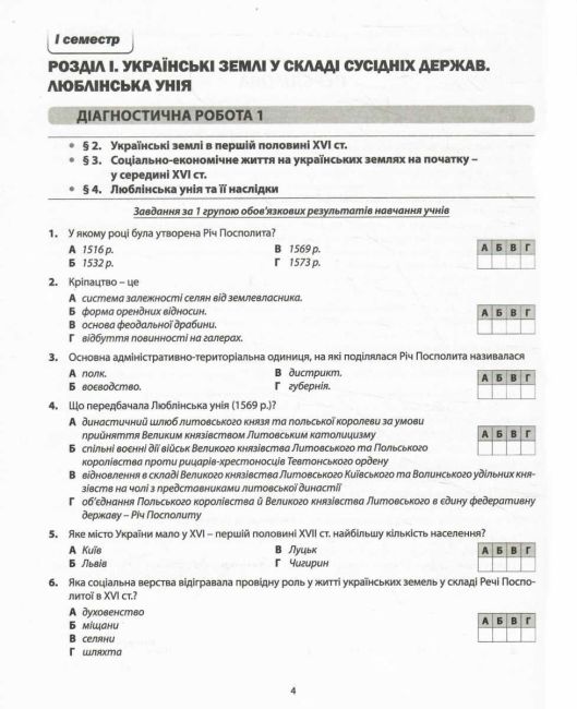 Цей посібник призначений для визначення рівня сформованості знань, умінь і навичок здобувачів освіти з історії України, відповідно до базових освітніх стандартів.