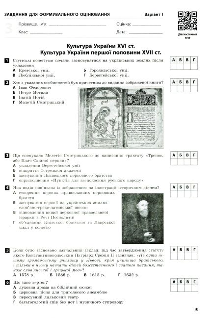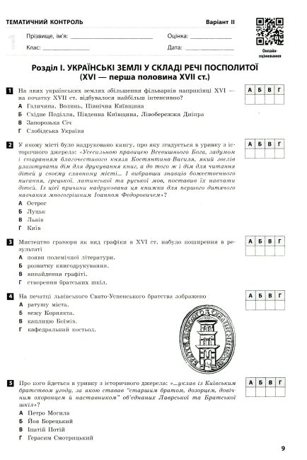 Цей зошит стане корисним як для учнів 8 класу, так і для вчителів історії. Він допоможе учням закріпити матеріал, а вчителям – організувати ефективний контроль навчальних досягнень та сформувати у учнів ключові компетентності.