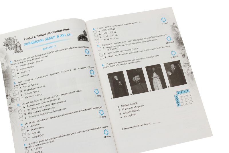 У зошиті ви знайдете тести і завдання, спрямовані на перевірку фактичних знань, уміння працювати з картою, картиною, документом. І що важливо для формування світогляду - завдання, які навчать вас критично мислити, зіставляти й оцінювати події і явища, діяльність історичних осіб, застосовувати і пояснювати історичні поняття і тенденції розвитку, сформулювати власну позицію та обґрунтовувати свою точку зору.