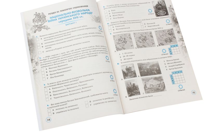 Історія України 8 клас Зошит для тематичного оцінювання Нова програма. Цей зошит допоможе вам перевірити свої знання з історії України, оцінити власні вміння й навички аналізувати історичні події, що відбувалися в нашій державі й на території вашого краю протягом XVI—XVIII ст. За допомогою вміщених цьому зошиті завдань ви також зможете узагальнити і закріпити вивчене проаналізувати свої успіхи і можливі прогалини в пізнанні історії, аби згодом поглибити свої знання або надолужити пропущене.