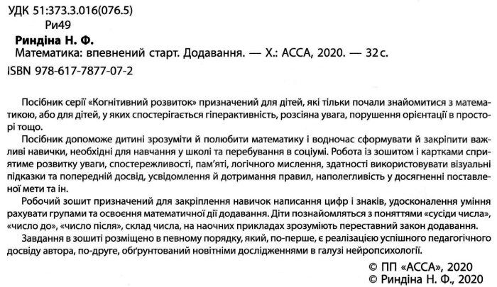 КОГНІТИВНИЙ РОЗВИТОК МАТЕМАТИКА ВПЕВНЕНИЙ СТАРТ ДОДАВАННЯ 5-7 РОКІВ АССА
