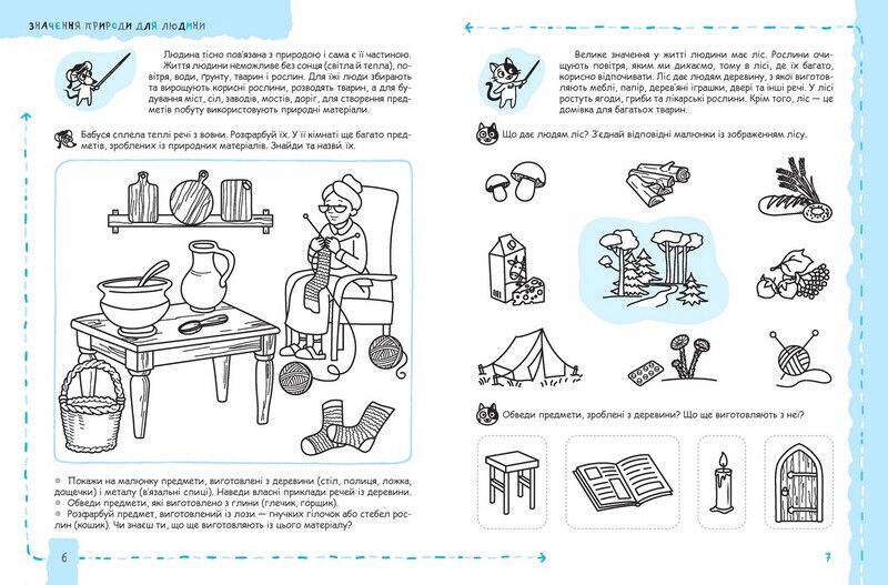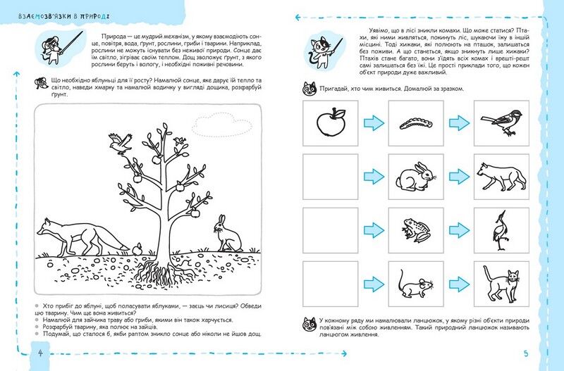 Посібник містить необхідний теоретичний матеріал, а також сучасні, цікаві, доступні, актуальні завдання, скомпоновані за принципами цілісності, системності, послідовності, поступового ускладнення, закріплення та повторення матеріалу. Зошит укладено за чинним Базовим компонентом дошкільної освіти та програмами розвитку дитини. До завдань із природознавства входить матеріал із розвитку мовлення, підготовки руки до письма, логіки, суспільствознавства тощо. Герої зошита, котик та мишеня, перетворять заняття на веселу й цікаву гру.