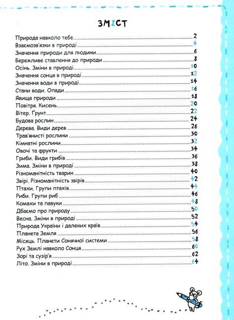Зошит містить різноманітні завдання та вправи, спрямовані на вивчення природи, її різноманітності та значення для людини. Діти ознайомляться з різноманітними екосистемами, тваринами та рослинами, а також з принципами екологічного поведінки та важливістю збереження довкілля.