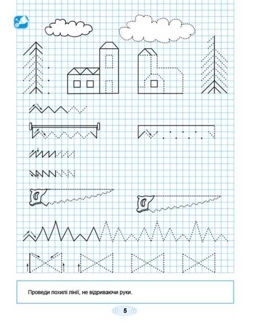 У посібнику містяться різноманітні вправи та завдання, які допомагають дітям розвивати моторні навички, координацію рухів та точність. Вправи спрямовані на виконання різних рухів пальцями, що корисно для подальшого письма.