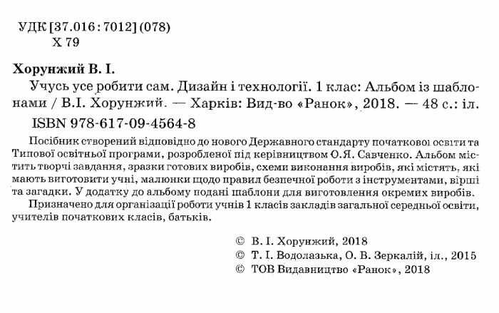 Альбом із шаблонами Учусь усе робити сам Дизайн і технології 1 клас НУШ Авт: Хорунжий В.І. Вид-во: Ранок 19964