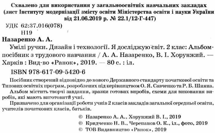 Альбом-посібник Дизайн і технології Я досліджую світ Умілі ручки 2 клас НУШ Авт: Назаренко А.А. Хорунжий В.І. Вид-во: Ранок 22643