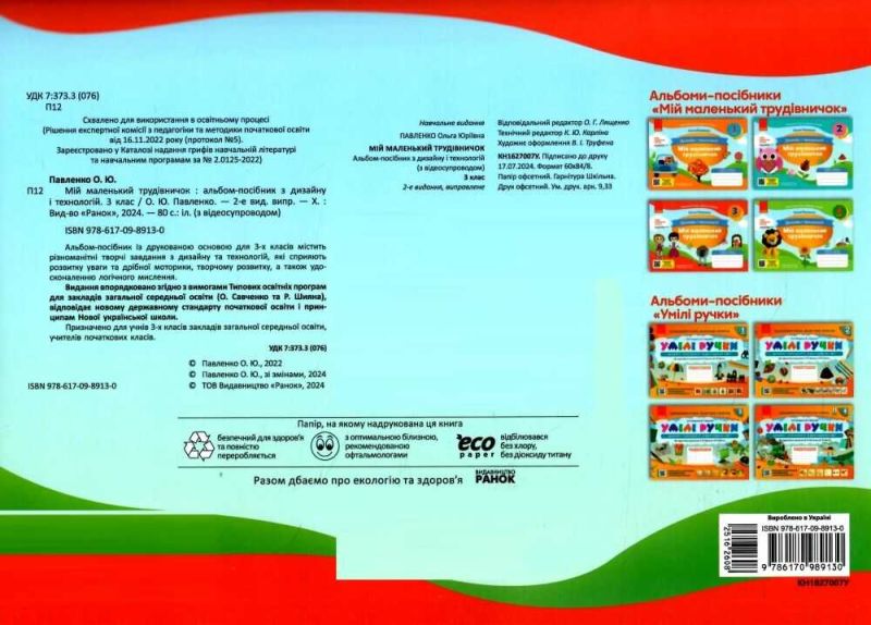 Альбом-посібник з трудового навчання Дизайн і технології Мій маленький трудівничок 3 клас НУШ Авт: О. Павленко Вид-во: Ранок 101270