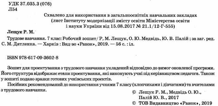 Робочий зошит Трудове навчання 7 клас Оновлена програма Авт: Лещук Р.М. та ін. Вид-во: Ранок 36035