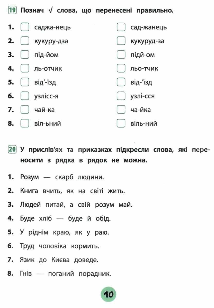 Перевірити правильність рішення допоможуть ключі, що знаходяться в кінці зошита. Матеріал відповідає освітній програмі з української мови для 1–4 класів.