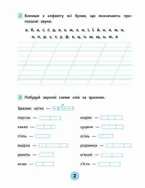Тренувалочка Українська мова 2 клас Зошит практичних завдань. Посібник допоможе учням 2 класу вдосконалити навички роботи з буквами і звуками, повправлятися в правописі апострофа, великої літери, неоглушених приголосних і поділі слів на склади, закріпити знання про іменник, прикметник та дієслово, а також про слово, речення й текст.
