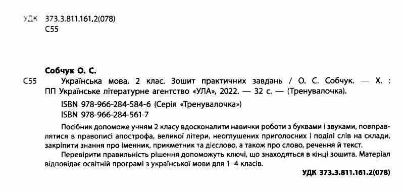 Тренувалочка Українська мова 2 клас Зошит практичних завдань Авт: Собчук О. Вид: УЛА