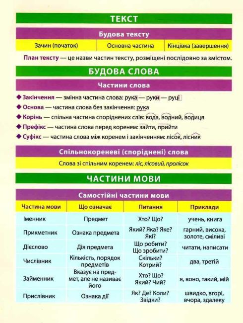 У посібнику підібрано різноманітні тексти та цікаві творчі вправи для тренування і розвитку письмових навичок учнів молодшої школи. Крім того, у ньому міститься картка з найважливішими правилами, за допомогою якої діти зможуть швидко вирішити питання з правопису та граматики.
