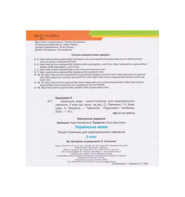 Зошит-помічничок для коригувального навчання Українська мова 3 клас НУШ Авт: Кравцова Н. Придаток О. Вид-во: Підручники і посібники 36015