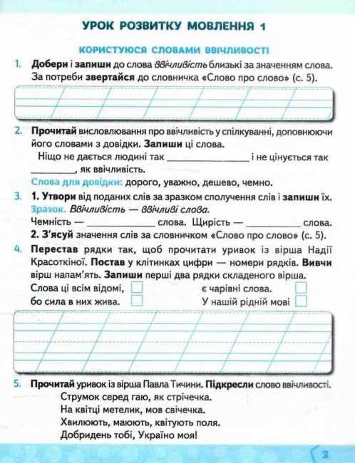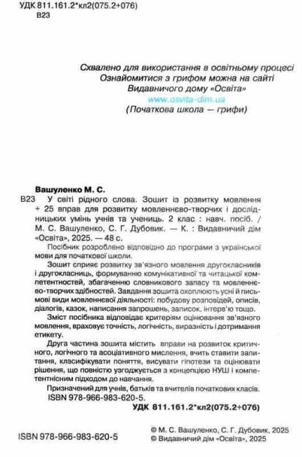 Робочий зошит «У світі рідного слова. Зошит із розвитку мовлення. 2 клас» (авт. М. С. Вашуленко, С. Г. Дубовик) розроблений відповідно до програми з української мови для початкової школи.