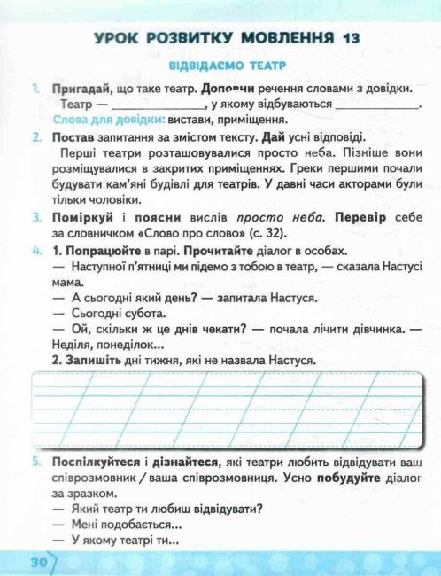 Посібник сприяє розвитку зв’язного мовлення другокласників, формуванню комунікативної та читацької компетентностей, збагаченню словникового запасу та мовленнєво-творчих здібностей. Завдання зошита охоплюють усні й письмові види мовленнєвої діяльності: побудову розповідей, описів, діалогів, казок, написання запрошень, записок, інтерв’ю тощо.