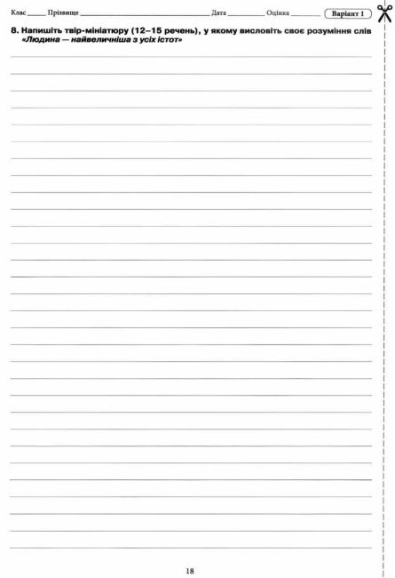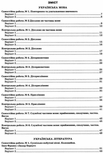 Зошит для поточного тематичного оцінювання Українська мова та література 7 клас. Укладено відповідно до чинної програми. Посібник призначено для проведення всіх тематичних робіт протягом року та під час вивчення теми, завдяки самостійним роботам, виявити рівень підготовки учня з пройденого матеріалу. Зошит варто використовувати для підготовки до ДПА та ЗНО, оскільки він містить типові види завдань.