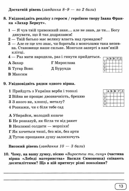 Зошит укладено відповідно до модельних навчальних програм «Українська література. 7–9 класи» для закладів загальної середньої освіти (автори: Яценко Т. О., Пахаренко В. І., Слижук О. А., Тригуб І. А.). Він призначений для діагностування рівня опанування тематичного матеріалу.