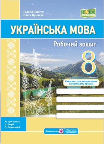 Робочий зошит Українська мова 8 клас НУШ Авт: Г. Панчук О. Приведа Вид-во: Пiдручники i посiбники 109592