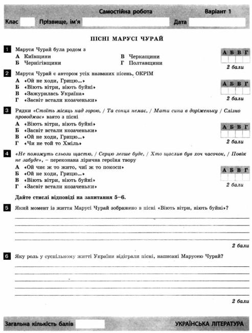 Тестові завдання розроблено з урахуванням моделі зовнішнього оцінювання, пропонованої Українським центром оцінювання якості освіти.