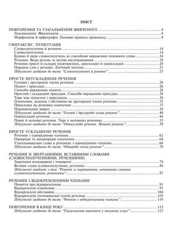 Кожна тема закінчується підсумковою роботою з трирівневими завданнями у двох варіантах.