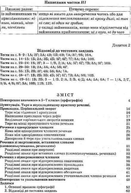 У зошиті подано чітко структуровані вправи, які охоплюють ключові розділи шкільного курсу української мови. Завдання укладено так, щоб навчити учнів правильно застосовувати правила правопису в реальних мовленнєвих ситуаціях, а також підвищити рівень грамотності під час написання різних видів письмових робіт.