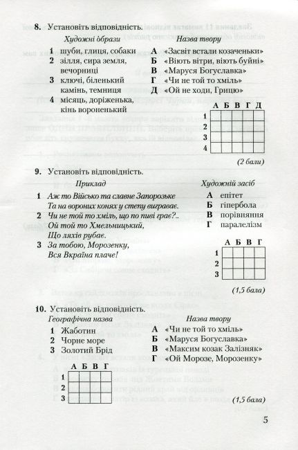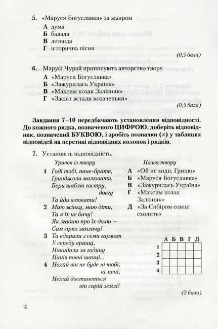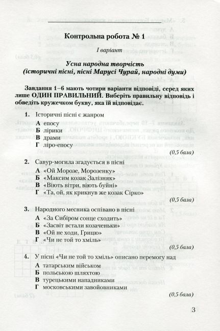 У виданні подано різнорівневі запитання та завдання, оформлені у тестовій формі закритого й відкритого типів. Такий підхід дозволяє перевіряти різні рівні сформованості знань: від простого відтворення інформації до аналізу, інтерпретації й творчого застосування.