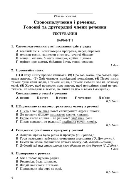 Зміст зошита розроблений відповідно до вимог оновленої програми та спрямований на системну перевірку знань учнів. Завдання підібрані таким чином, щоб забезпечити об’єктивність оцінювання й точне визначення рівня сформованості ключових мовних навичок.