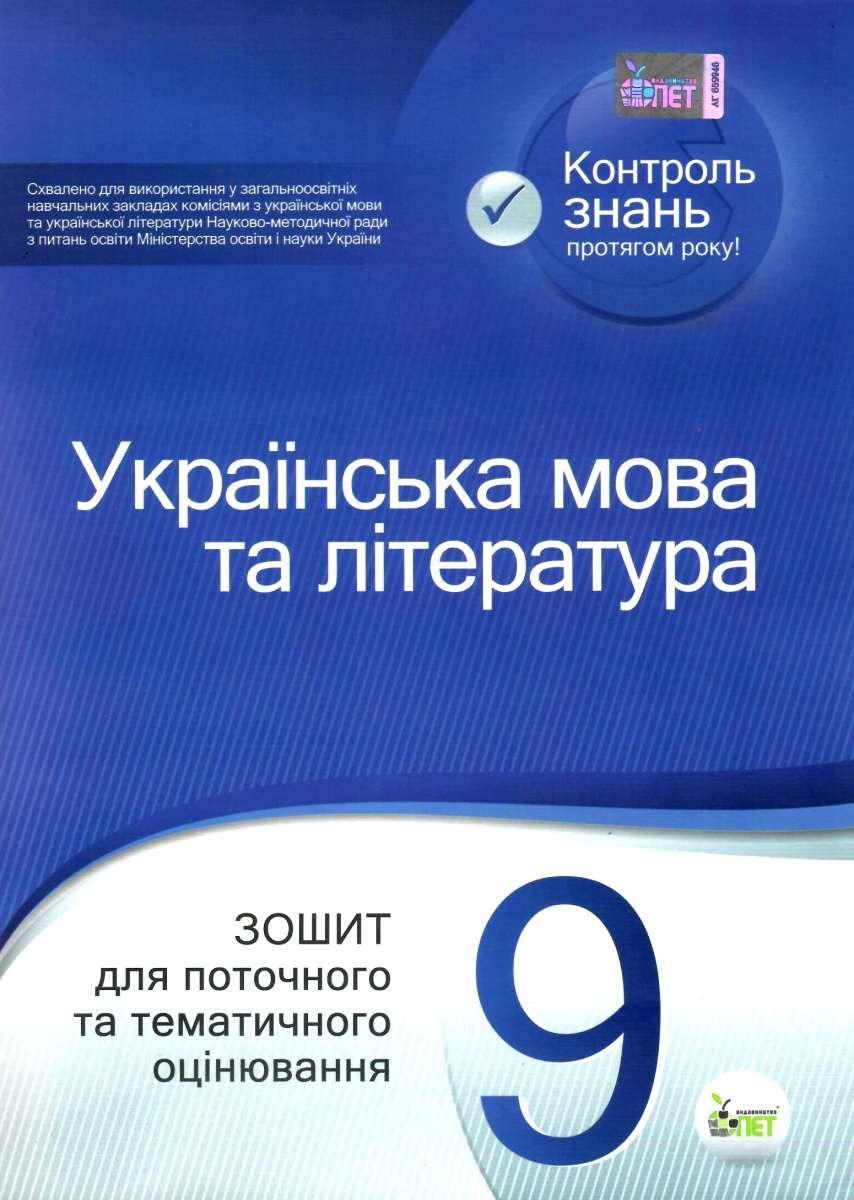 Зошит для поточного та тематичного оцінювання Українська мова та література 9 клас Нова програма Авт: Черсунова Н. Вид: ПЕТ 20640