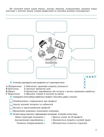 \n Зошит включає практичні матеріали для проведення уроків, практичних занять, навчальних ігор, виконання проєктних завдань та ситуаційних вправ. Це сприятиме не лише запам'ятовуванню вивченого матеріалу, але й активній участі учнів у навчальному процесі, формуванню навичок, необхідних для забезпечення власного економічного добробуту школярів та добробуту їхніх родин.