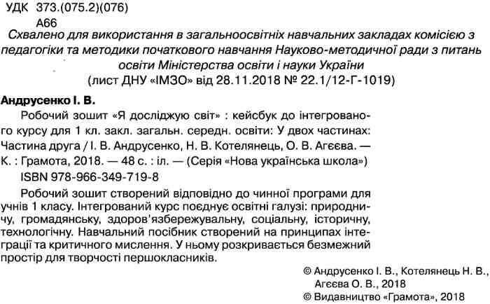 Кейсбук до інтегрованого курсу Я досліджую світ 1 клас 2 Частина Робочий зошит НУШ Авт: Андрусенко І. Вид: Грамота