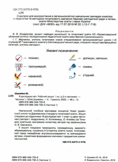 Робочий зошит Я досліджую світ 1 клас Частина 1 До підручника Андрусенко І. НУШ Шумейко Ю. Грамота