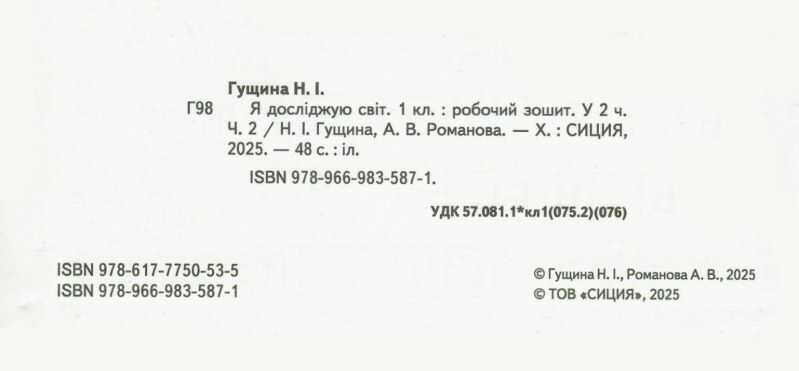 Робочий зошит Я досліджую світ 1 клас Частина 2 НУШ До підручника Бібік Н.М. Бондарчук Г.П. Авт: Гущина Н.І. Вид-во: Сиция 108302