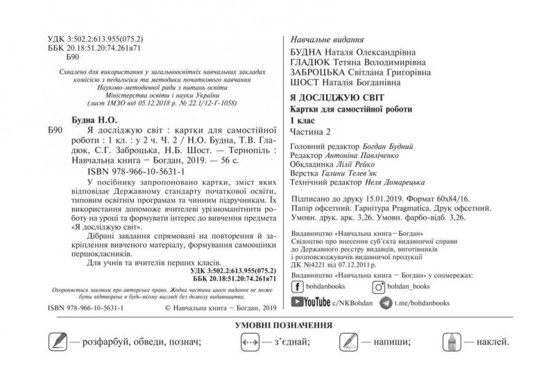 Картки для самостійної роботи Я досліджую світ 1 клас Частина 2 НУШ Авт: Будна Н.О. та ін. Вид-во: Богдан 97386