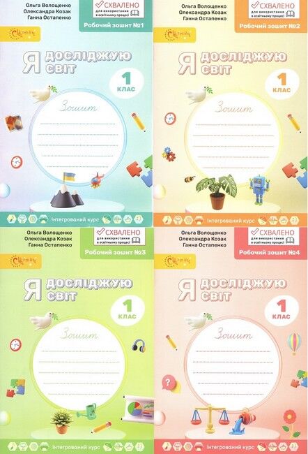 Кожен з 4-х зошитів має обсяг 48 сторінок й охоплює матеріал однієї навчальної чверті. Такий значний обсяг необхідний, щоб наповнити практичною діяльністью усі 7 годин на тиждень, передбачених Типовим навчальним планом НУШ для інтегрованого курсу “Я досліджую світ” у 1 класі.