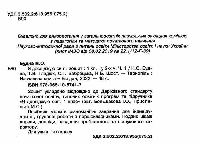 Зошит Я досліджую світ 1 клас Частина 1 До підручника Большакової І. НУШ Авт: Будна Н. Вид: Богдан