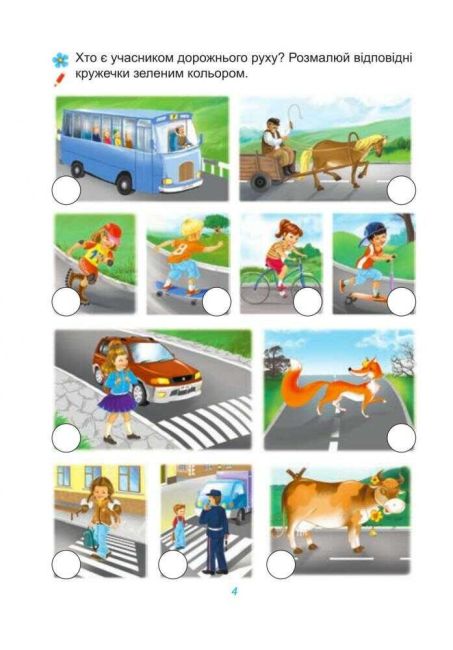 Запропоновано кольорову вкладку для виготовлення аплікацій Світлофор, Пішохідний перехід, матеріал для складання пазлів Автомобіль і дорожнього знака Пішохідний перехід та гру-доміно Дорожні знаки.
