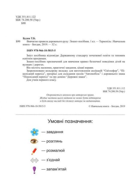 Зошит-посібник Вивчаємо правила дорожнього руху 1 клас НУШ Авт: Будна Н. Вид: Богдан