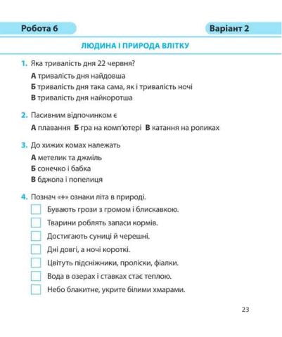 Посібник містить завдання для підсумкового тематичного оцінювання навчальних досягнень учнів із предмета «Я досліджую світ» у 2 класі, який здійснюється письмово у формі комбінованої діагностичної роботи наприкінці вивчення кожного розділу програми.
