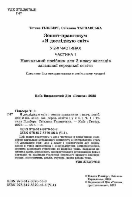 Зошит-практикум Я досліджую світ 2 клас у 2-х частинах Частина 1 НУШ Авт: Т. Гільберг С. Тарнавська Вид-во: Генеза 110398