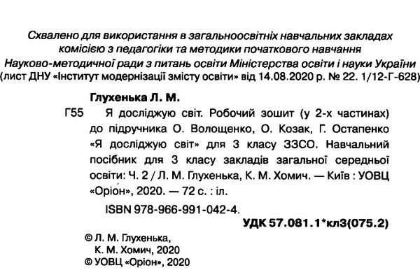 Робочий зошит Я досліджую світ 3 клас Частина 2 НУШ До підручника Волощенко О. та ін. Авт: Глухенька Л. Хомич К. Вид-во: Оріон 36098