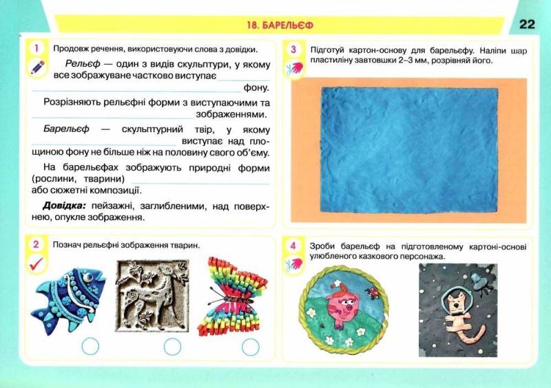 Альбом-посібник уключає завдання як репродуктивного, так і творчого характеру. Посібник містить додатки, де подано шаблони, основи для аплікацій.